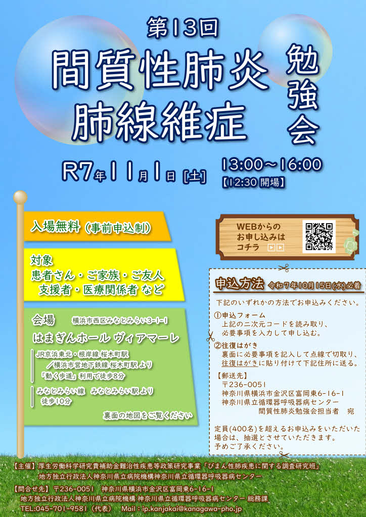 令和7年11月1日(土)に開催した第13回 間質性肺炎/肺線維症勉強会(第35回 公開医療講座)の動画をYouTubeに掲載しました。下記リンクよりぜひご覧ください。